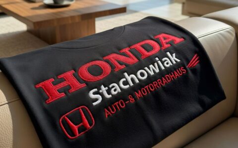 Die Vorlage wird anschließend in eine Stickdatei umgewandelt, die von der Stickmaschine verarbeitet werden kann. Hierfür wird in der Regel spezielle Sticksoftware verwendet, die das Design in Stichpunkte umwandelt.